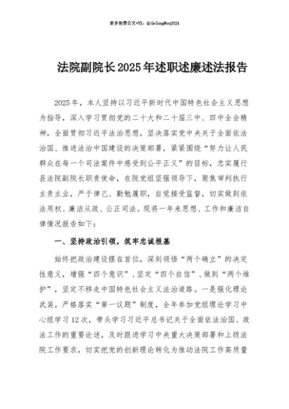 / 【七哥公文】2025年:法院副院长2025年述职述廉述法报告+更多免费公文+VX:QiGeGongWen2024