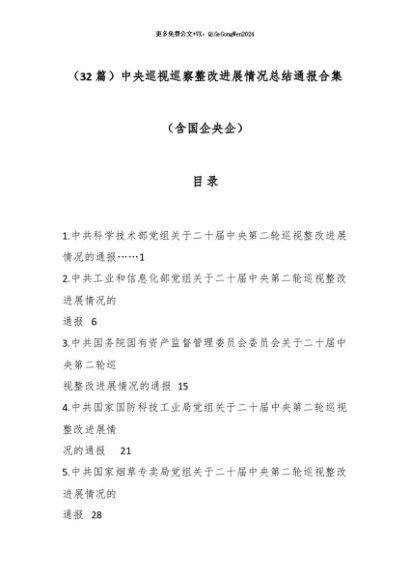 【七哥公文】2025年:(32篇)中央巡视巡察整改进展情况总结通报合集(含国企央企)+更多免费公文+VX:QiGeGongWen2024