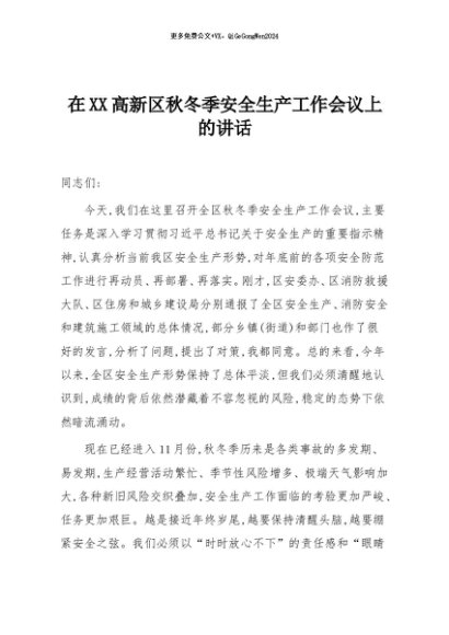 / 【七哥公文】2025年:在XX高新区秋冬季安全生产工作会议上的讲话+更多免费公文+VX:QiGeGongWen2024
