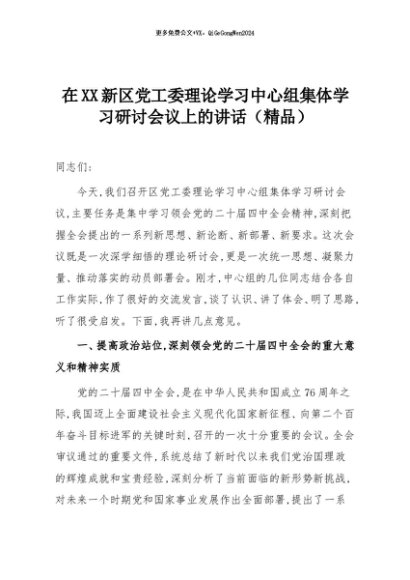 【七哥公文】2025年:在XX新区党工委理论学习中心组集体学习研讨会议上的讲话(精品)+更多免费公文+VX:QiGeGongWen2024