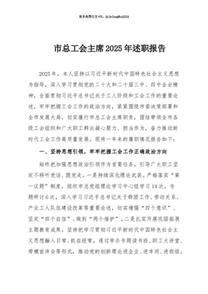 / 【七哥公文】2025年:市总工会主席2025年述职报告+更多免费公文+VX:QiGeGongWen2024