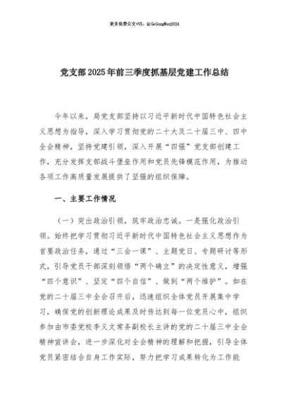 / 【七哥公文】2025年:党支部2025年前三季度抓基层党建工作总结+更多免费公文+VX:QiGeGongWen2024