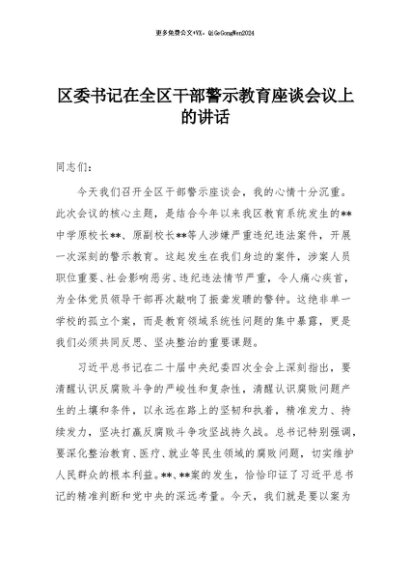/ 【七哥公文】2025年:区委书记在全区干部警示教育座谈会议上的讲话+更多免费公文+VX:QiGeGongWen2024