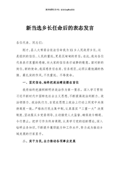 / 【七哥公文】2025年:新当选乡长任命后的表态发言+更多免费公文+VX:QiGeGongWen2024
