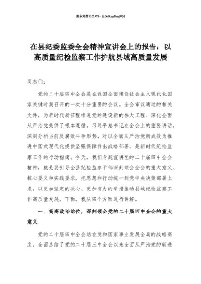 【七哥公文】2025年:在县纪委监委全会精神宣讲会上的报告:以高质量纪检监察工作护航县域高质量发展+更多免费公文+VX:QiGeGongWen2024