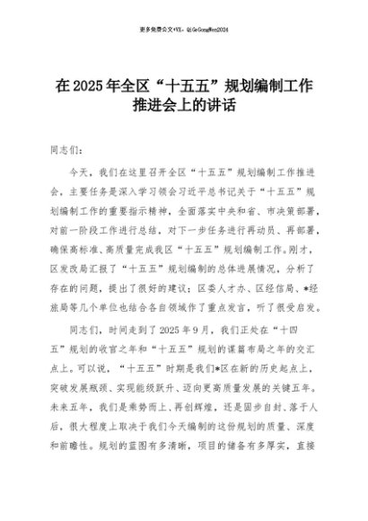 【七哥公文】2025年:在2025年全区“十五五”规划编制工作推进会上的讲话+更多免费公文+VX:QiGeGongWen2024