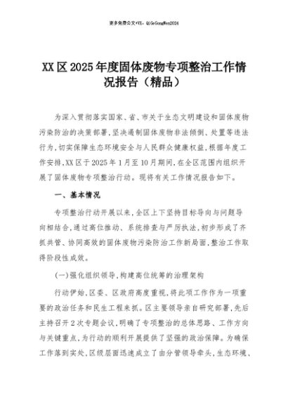 【七哥公文】2025年:XX区2025年度固体废物专项整治工作情况报告(精品)+更多免费公文+VX:QiGeGongWen2024