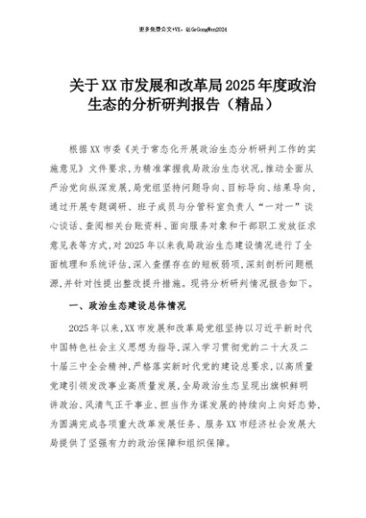 【七哥公文】2025年:关于XX市发展和改革局2025年度政治生态的分析研判报告(精品)+更多免费公文+VX:QiGeGongWen2024
