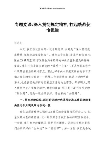 / 【七哥公文】2025年:专题党课:深入贯彻规定精神,扛起统战使命担当+更多免费公文+VX:QiGeGongWen2024