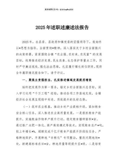 / 【七哥公文】2025年:2025年述职述廉述法报告+更多免费公文+VX:QiGeGongWen2024