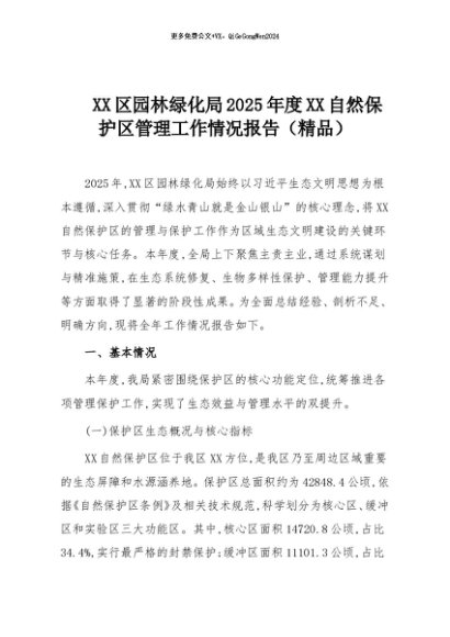 【七哥公文】2025年:XX区园林绿化局2025年度XX自然保护区管理工作情况报告(精品)+更多免费公文+VX:QiGeGongWen2024