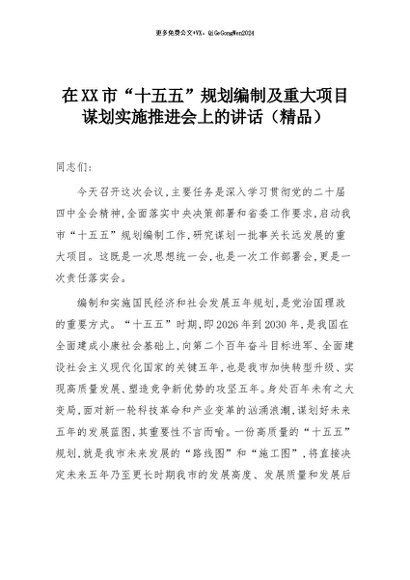 【七哥公文】2025年:在XX市“十五五”规划编制及重大项目谋划实施推进会上的讲话(精品)+更多免费公文+VX:QiGeGongWen2024