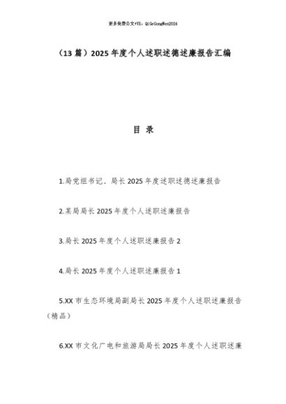 / 【七哥公文】2025年:(13篇)2025年度个人述职述德述廉报告汇编+更多免费公文+VX:QiGeGongWen2024