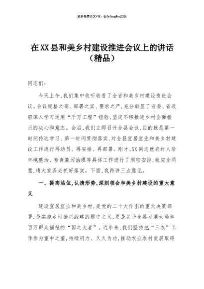 / 【七哥公文】2025年:在XX县和美乡村建设推进会议上的讲话(精品)+更多免费公文+VX:QiGeGongWen2024
