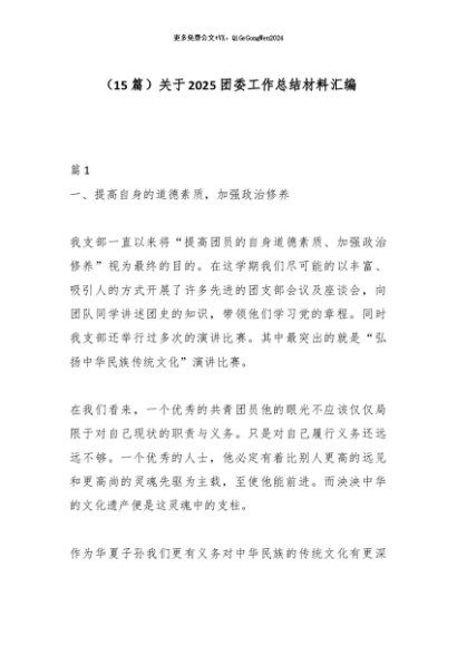 / 【七哥公文】2025年:(15篇)关于2025团委工作总结材料汇编+更多免费公文+VX:QiGeGongWen2024
