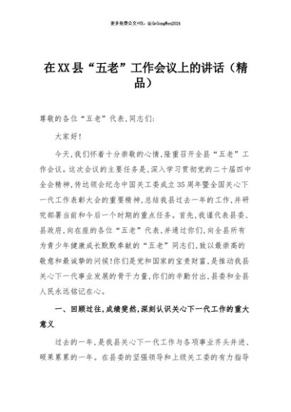 【七哥公文】2025年:在XX县“五老”工作会议上的讲话(精品)+更多免费公文+VX:QiGeGongWen2024