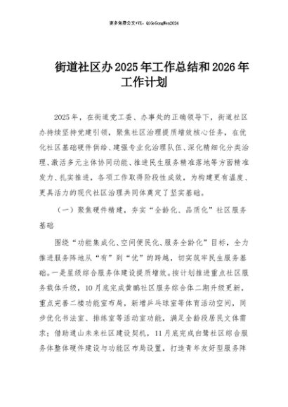 / 【七哥公文】2025年:街道社区办2025年工作总结和2026年工作计划+更多免费公文+VX:QiGeGongWen2024