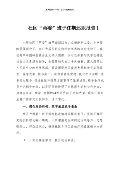 【七哥公文】2025年:社区“两委”班子任期述职报告1+更多免费公文+VX:QiGeGongWen2024