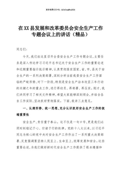 【七哥公文】2025年:在XX县发展和改革委员会安全生产工作专题会议上的讲话(精品)+更多免费公文+VX:QiGeGongWen2024