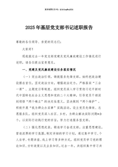 / 【七哥公文】2025年:2025年基层党支部书记述职报告+更多免费公文+VX:QiGeGongWen2024