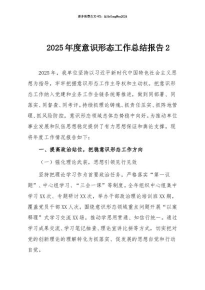 / 【七哥公文】2025年:2025年度意识形态工作总结报告2+更多免费公文+VX:QiGeGongWen2024