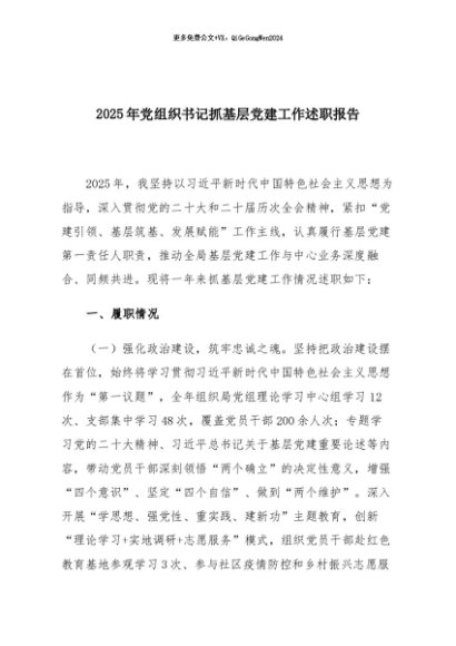 / 【七哥公文】2025年:2025年党组织书记抓基层党建工作述职报告+更多免费公文+VX:QiGeGongWen2024