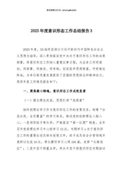 / 【七哥公文】2025年:2025年度意识形态工作总结报告3+更多免费公文+VX:QiGeGongWen2024