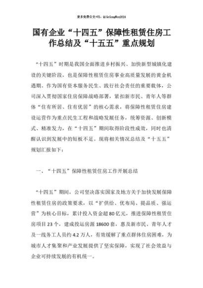 【七哥公文】2025年:国有企业“十四五”保障性租赁住房工作总结及“十五五”重点规划_副本+更多免费公文+VX:QiGeGongWen2024