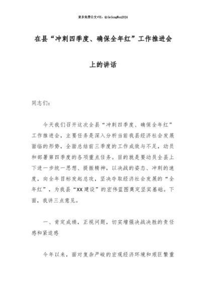 【七哥公文】2025年:在县“冲刺四季度、确保全年红”工作推进会上的讲话_副本+更多免费公文+VX:QiGeGongWen2024