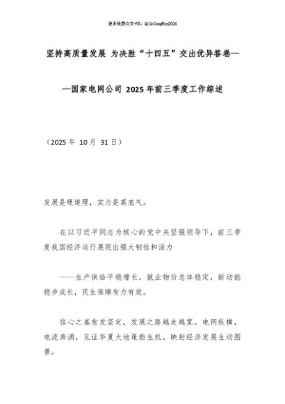 【七哥公文】2025年:坚持高质量发展 为决胜“十四五”交出优异答卷——国家电网公司 2025 年前三季度工作综述_副本+更多免费公文+VX:QiGeGongWen2024