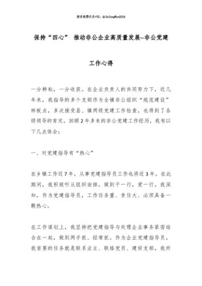 【七哥公文】2025年:保持“四心” 推动非公企业高质量发展--非公党建工作心得_副本+更多免费公文+VX:QiGeGongWen2024