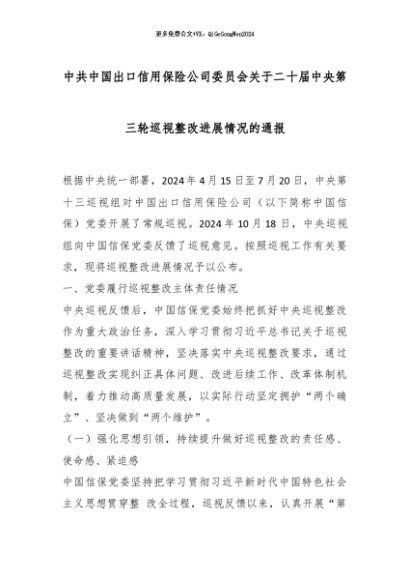 【七哥公文】2025年:中共中国出口信用保险公司委员会关于二十届中央第三轮巡视整改进展情况的通报_副本+更多免费公文+VX:QiGeGongWen2024