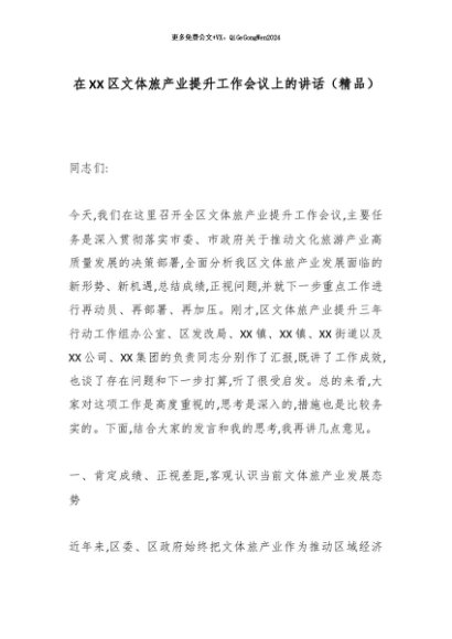 【七哥公文】2025年:在XX区文体旅产业提升工作会议上的讲话(精品)_副本+更多免费公文+VX:QiGeGongWen2024