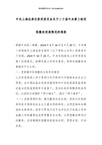 【七哥公文】2025年:中共上海证券交易所委员会关于二十届中央第三轮巡视整改进展情况的通报_副本+更多免费公文+VX:QiGeGongWen2024