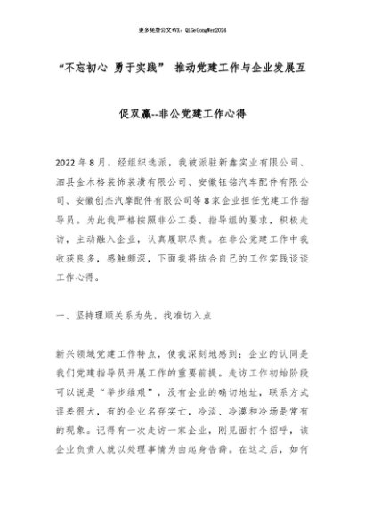 【七哥公文】2025年:“不忘初心 勇于实践” 推动党建工作与企业发展互促双赢--非公党建工作心得_副本+更多免费公文+VX:QiGeGongWen2024