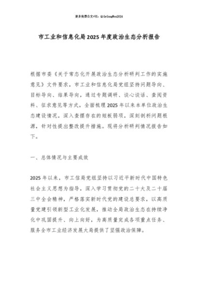 【七哥公文】2025年:市工业和信息化局2025年度政治生态分析报告_副本+更多免费公文+VX:QiGeGongWen2024