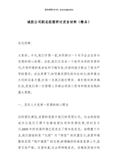 / 【七哥公文】2025年:城投公司副总经理研讨发言材料(精品)_副本+更多免费公文+VX:QiGeGongWen2024
