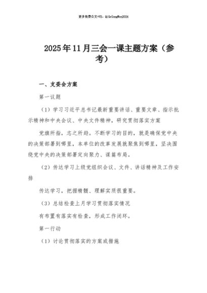 【七哥公文】2025年:2025年11月三会一课主题方案(参考)+更多免费公文+VX:QiGeGongWen2024