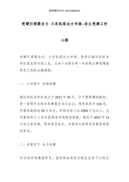 【七哥公文】2025年:党建引领聚合力 小农机闯出大市场--非公党建工作心得_副本+更多免费公文+VX:QiGeGongWen2024