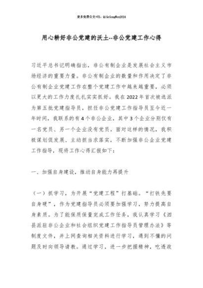 【七哥公文】2025年:用心耕好非公党建的沃土--非公党建工作心得_副本+更多免费公文+VX:QiGeGongWen2024