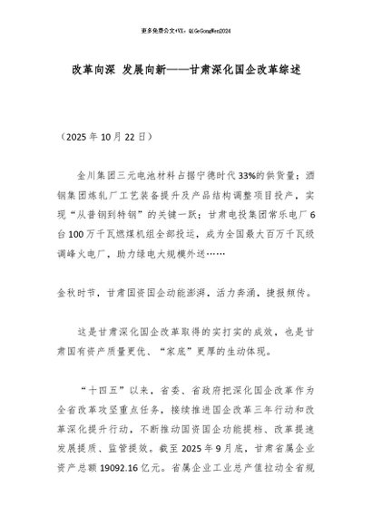 【七哥公文】2025年:改革向深 发展向新——甘肃深化国企改革综述_副本+更多免费公文+VX:QiGeGongWen2024