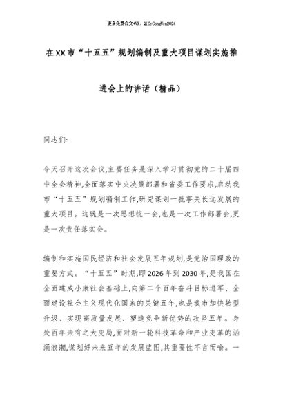 【七哥公文】2025年:在XX市“十五五”规划编制及重大项目谋划实施推进会上的讲话(精品)_副本+更多免费公文+VX:QiGeGongWen2024