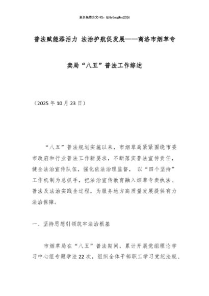 【七哥公文】2025年:普法赋能添活力 法治护航促发展——商洛市烟草专卖局“八五”普法工作综述_副本+更多免费公文+VX:QiGeGongWen2024
