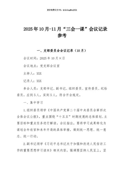 / 【七哥公文】2025年:2025年10月-11月“三会一课”会议记录参考+更多免费公文+VX:QiGeGongWen2024
