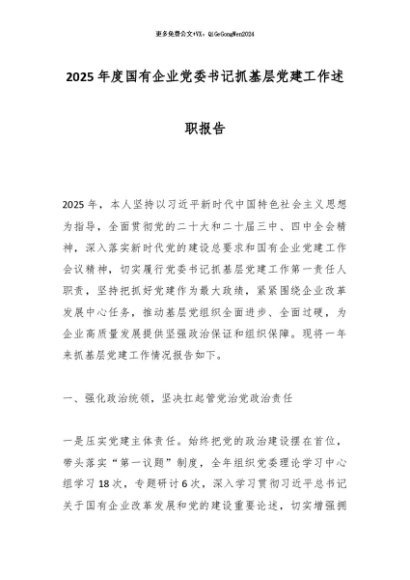 【七哥公文】2025年:2025年度国有企业党委书记抓基层党建工作述职报告_副本+更多免费公文+VX:QiGeGongWen2024