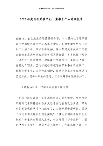 【七哥公文】2025年:2025年度国企党委书记、董事长个人述职报告_副本+更多免费公文+VX:QiGeGongWen2024