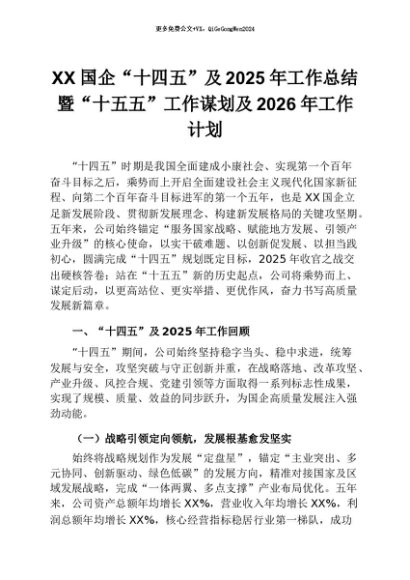 【七哥公文】2025年:XX国企“十四五”及2025年工作总结暨“十五五”工作谋划及2026年工作计划+更多免费公文+VX:QiGeGongWen2024