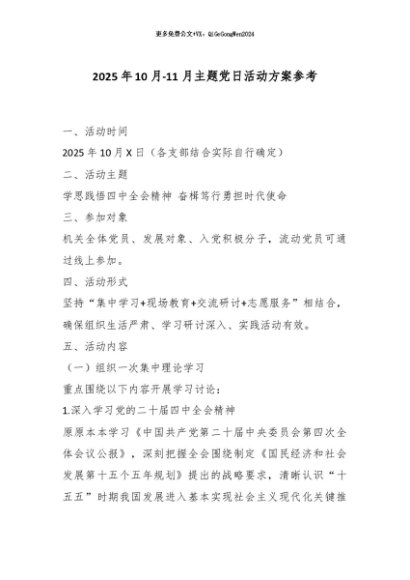 【七哥公文】2025年:2025年10月-11月主题党日活动方案参考_副本+更多免费公文+VX:QiGeGongWen2024