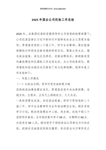 / 【七哥公文】2025年:2025年国企公司纪检工作总结_副本+更多免费公文+VX:QiGeGongWen2024