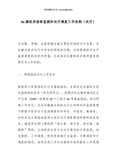【七哥公文】2025年:Xx旗经济指标监测和运行调度工作机制(试行)_副本+更多免费公文+VX:QiGeGongWen2024